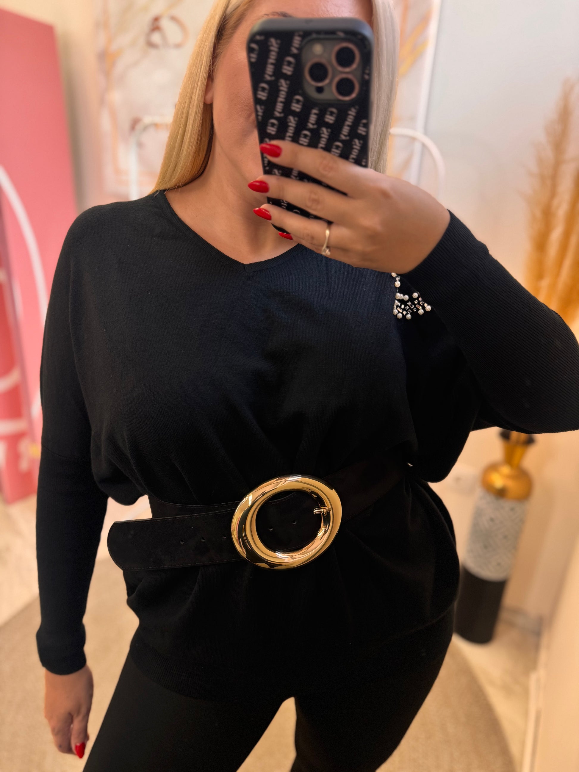Μαύρο Πλεκτό Μπλουζοφορεμα Με Μοτίφ
