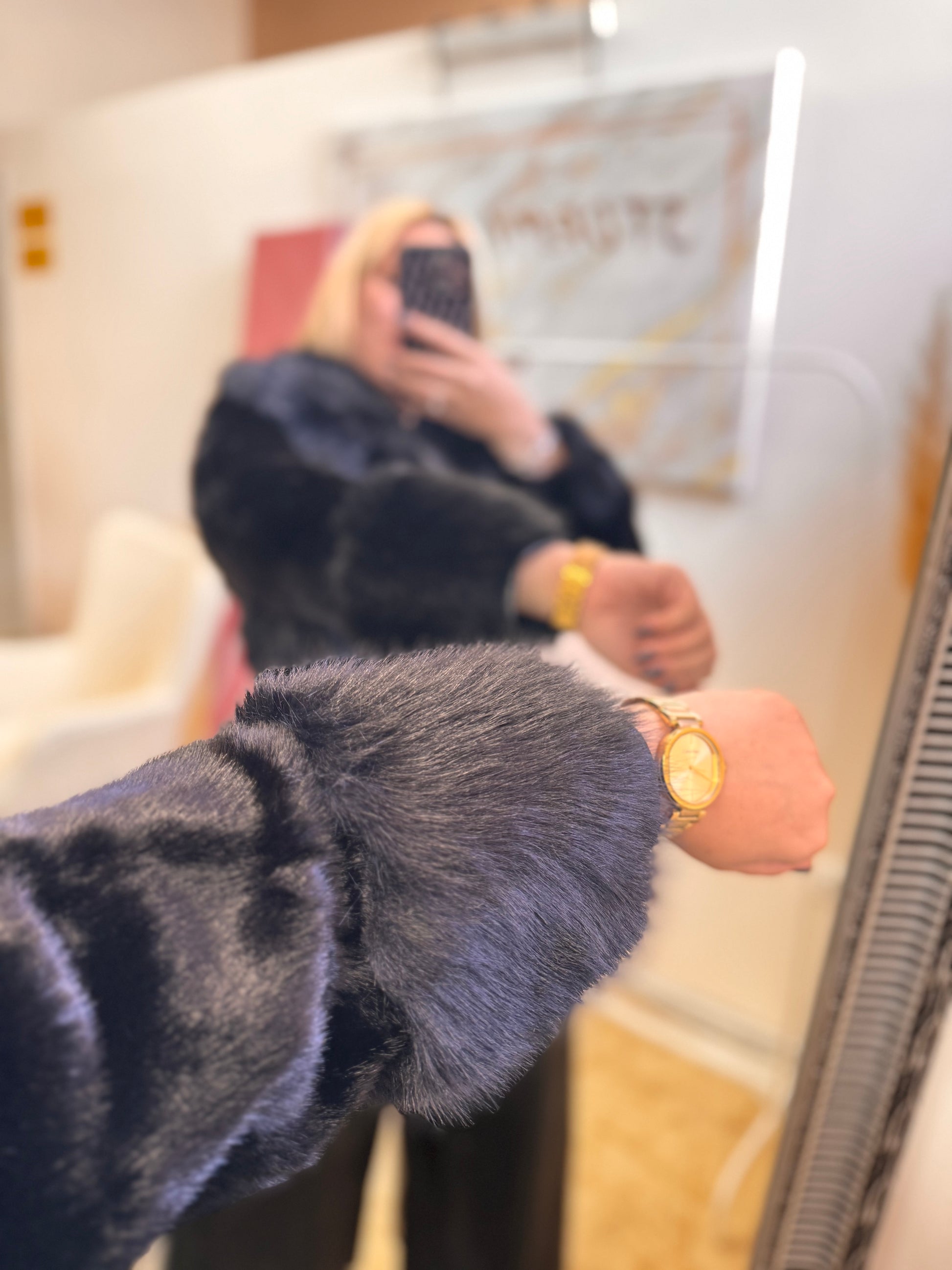 -Συνθετική πλούσια γούνα και τσεπεςκαι γουνα