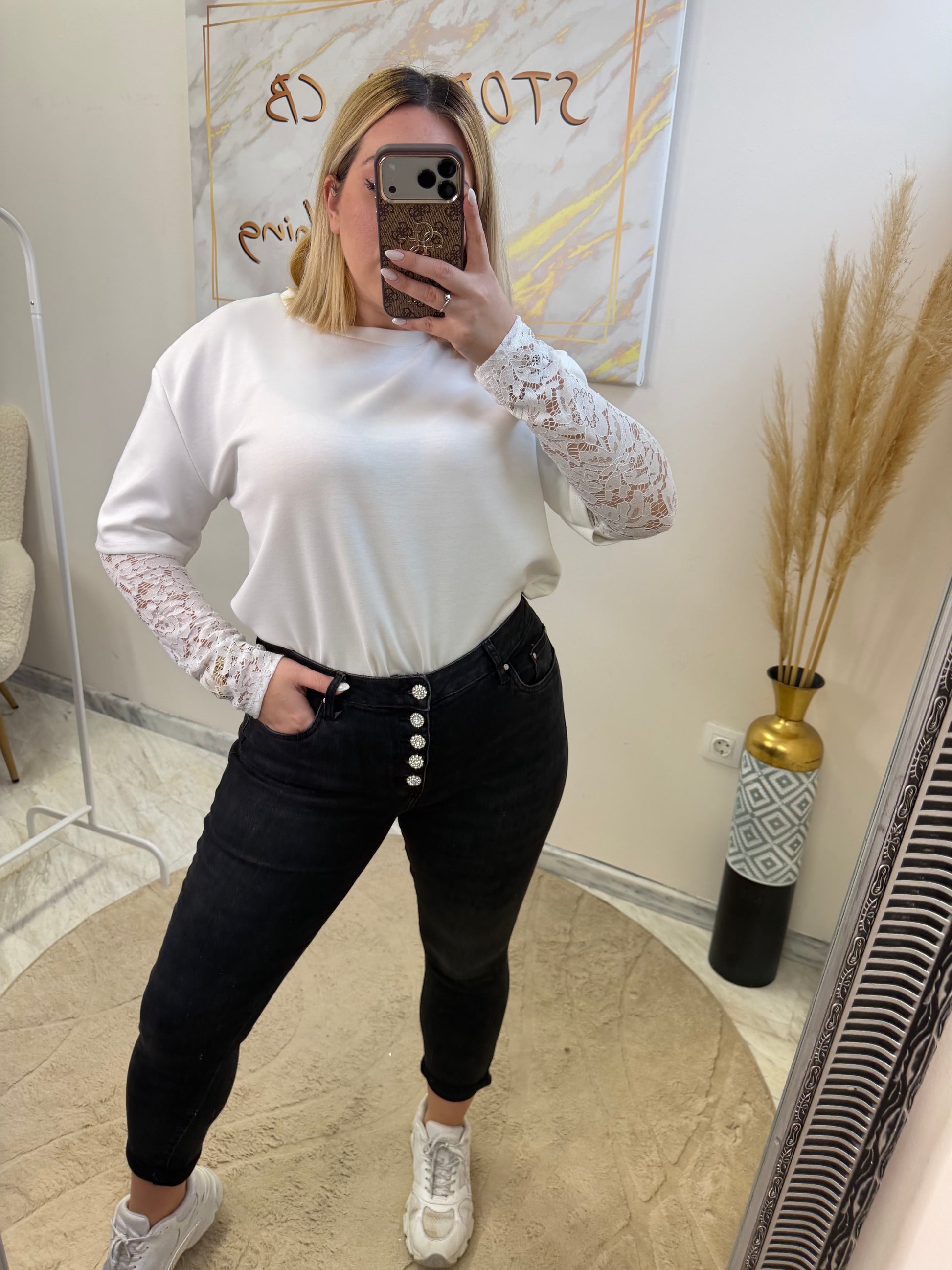 -Mon fit,ψηλομεσο στον αφαλό , με 5 στρασένια κουμπια .