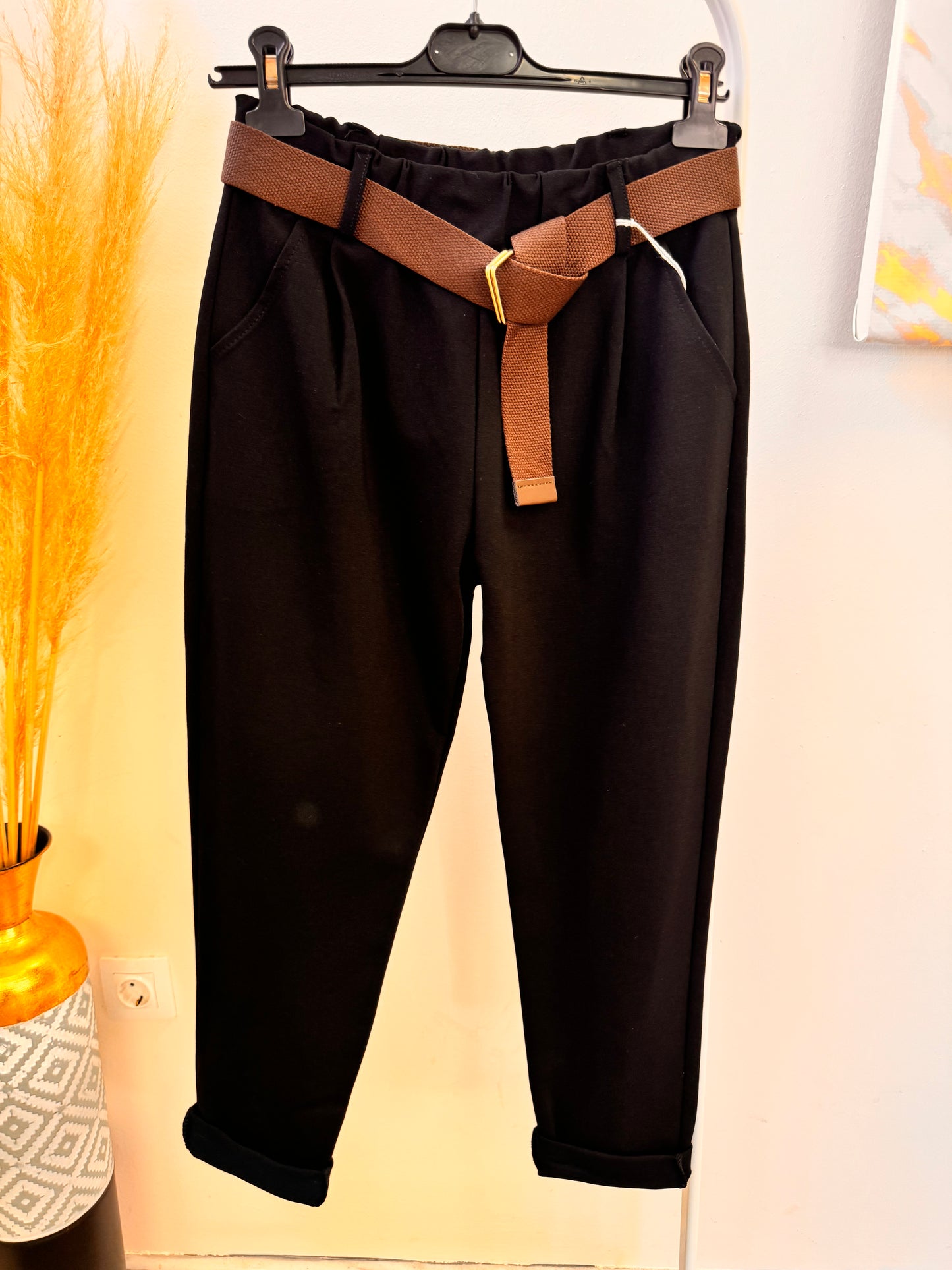 -Διαθέτει λάστιχο στη μέση , με τσέπες και ζώνη
