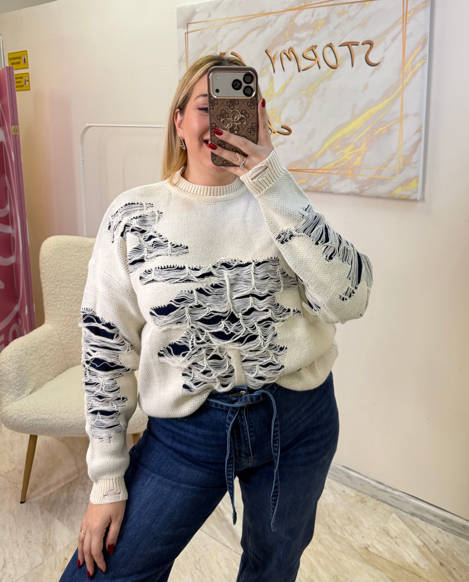 -One size πουλοβερ,ελαστικό με ξέφτια