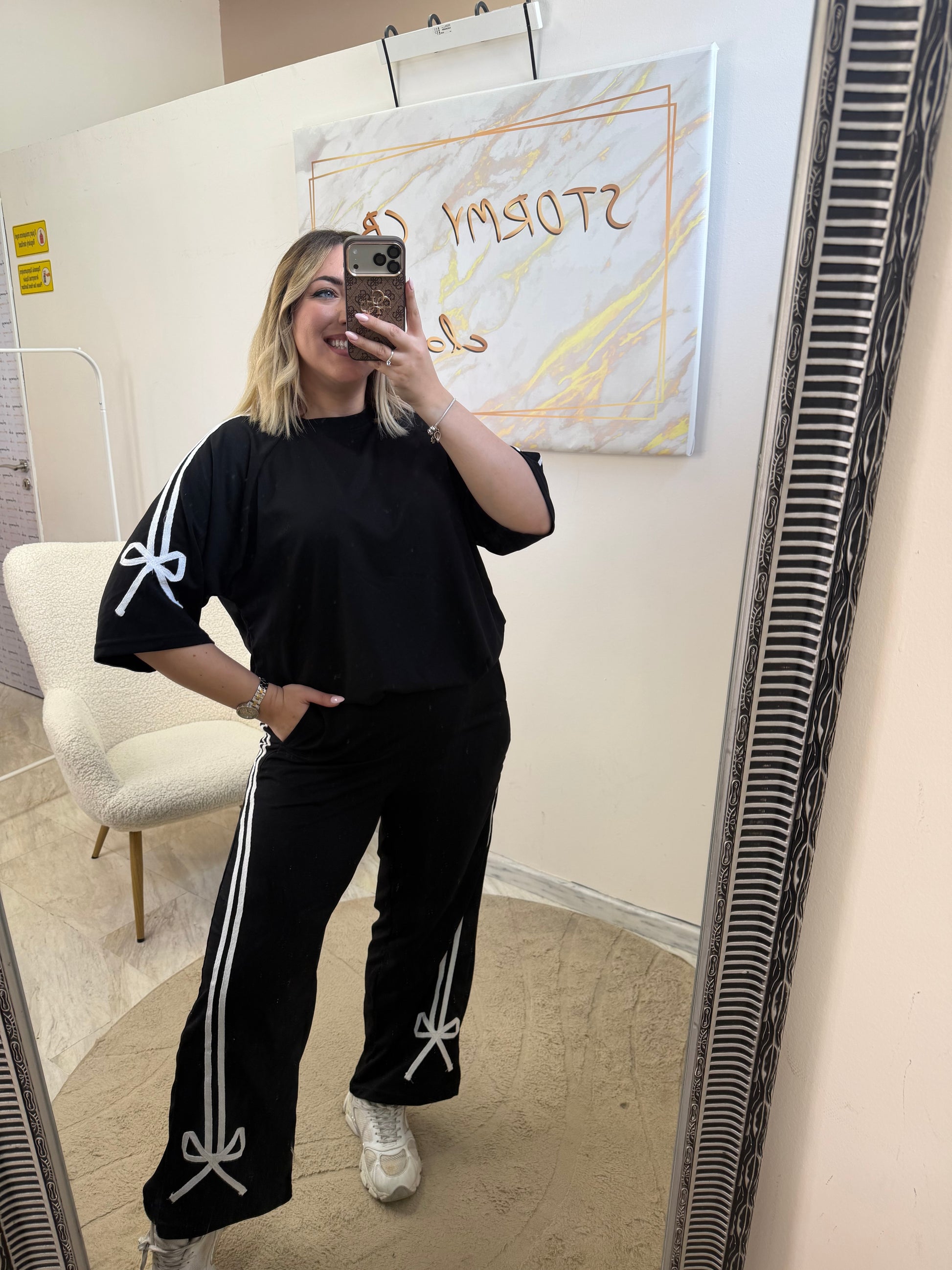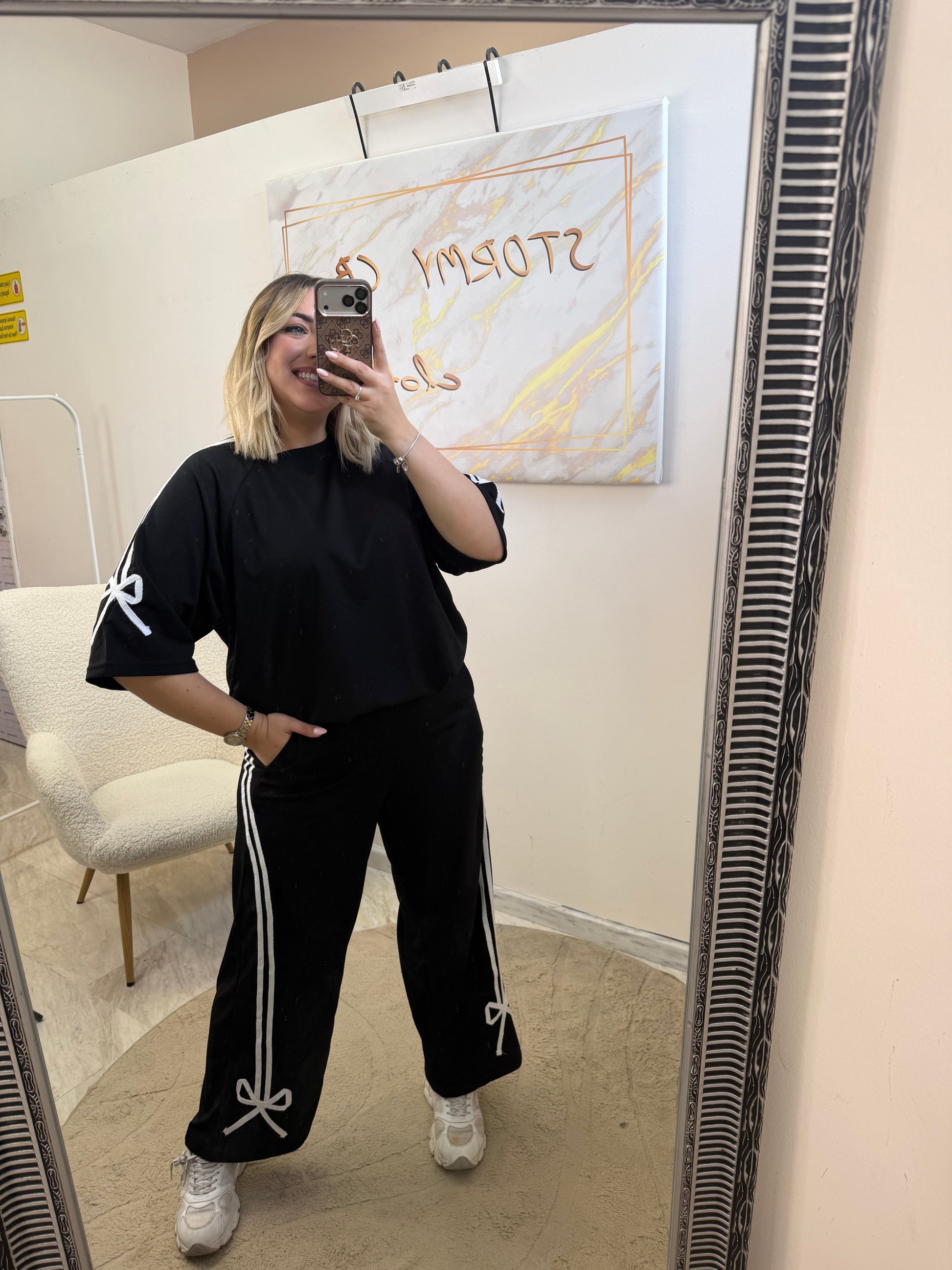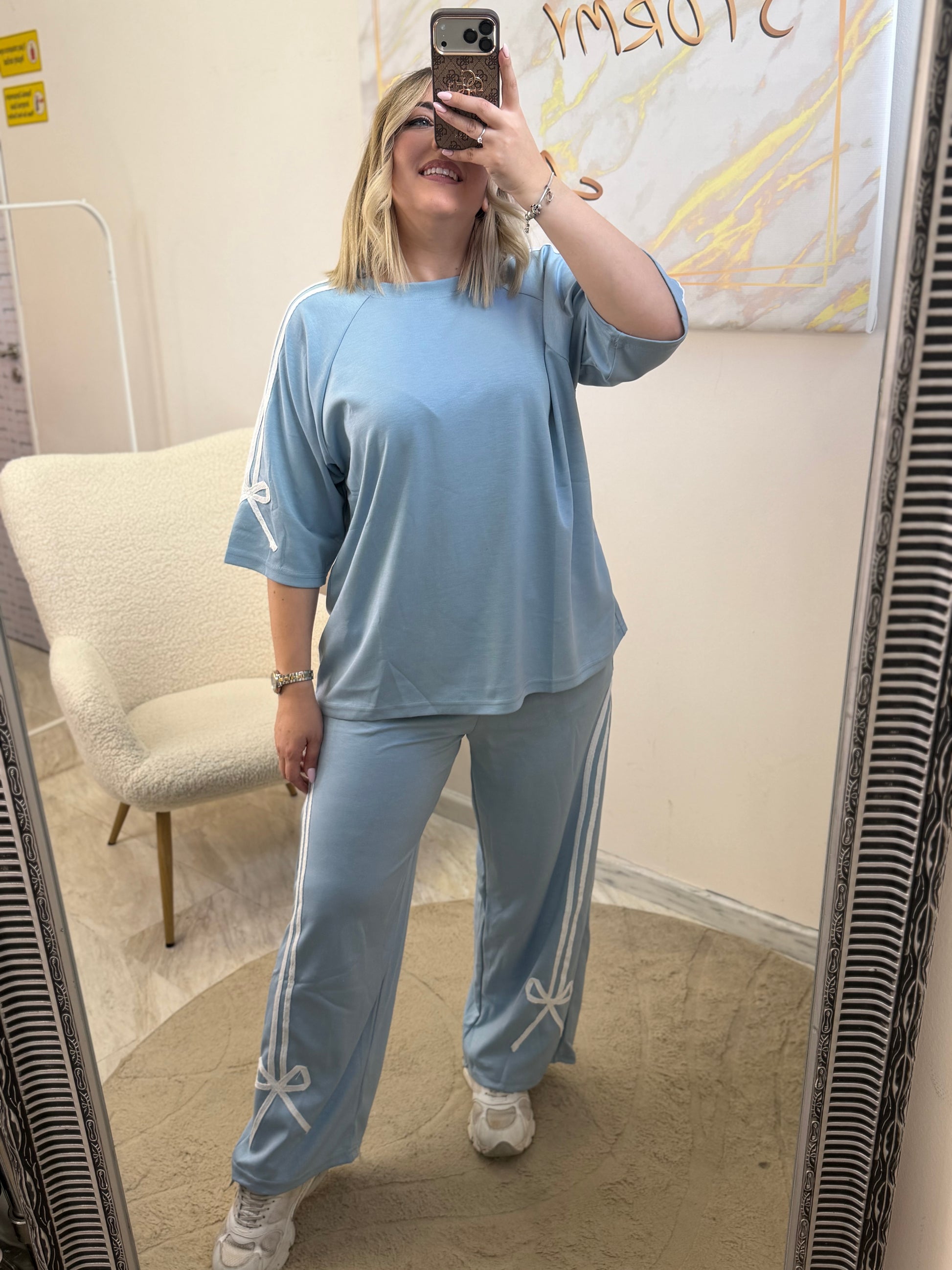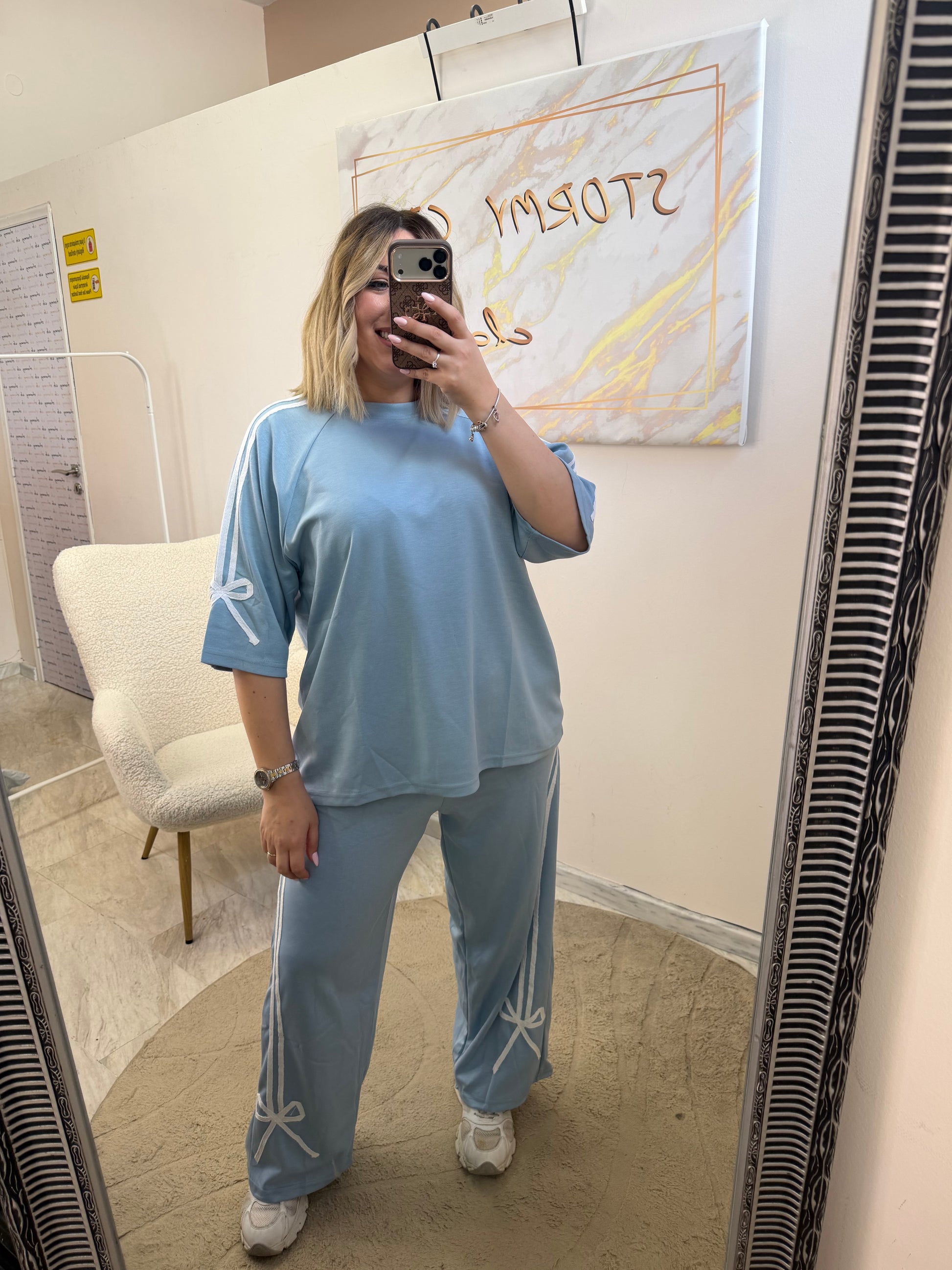 -Ανετη μπλουζα oversized με άνετο μανίκι με λευκό σιρίτι και φιόγκο