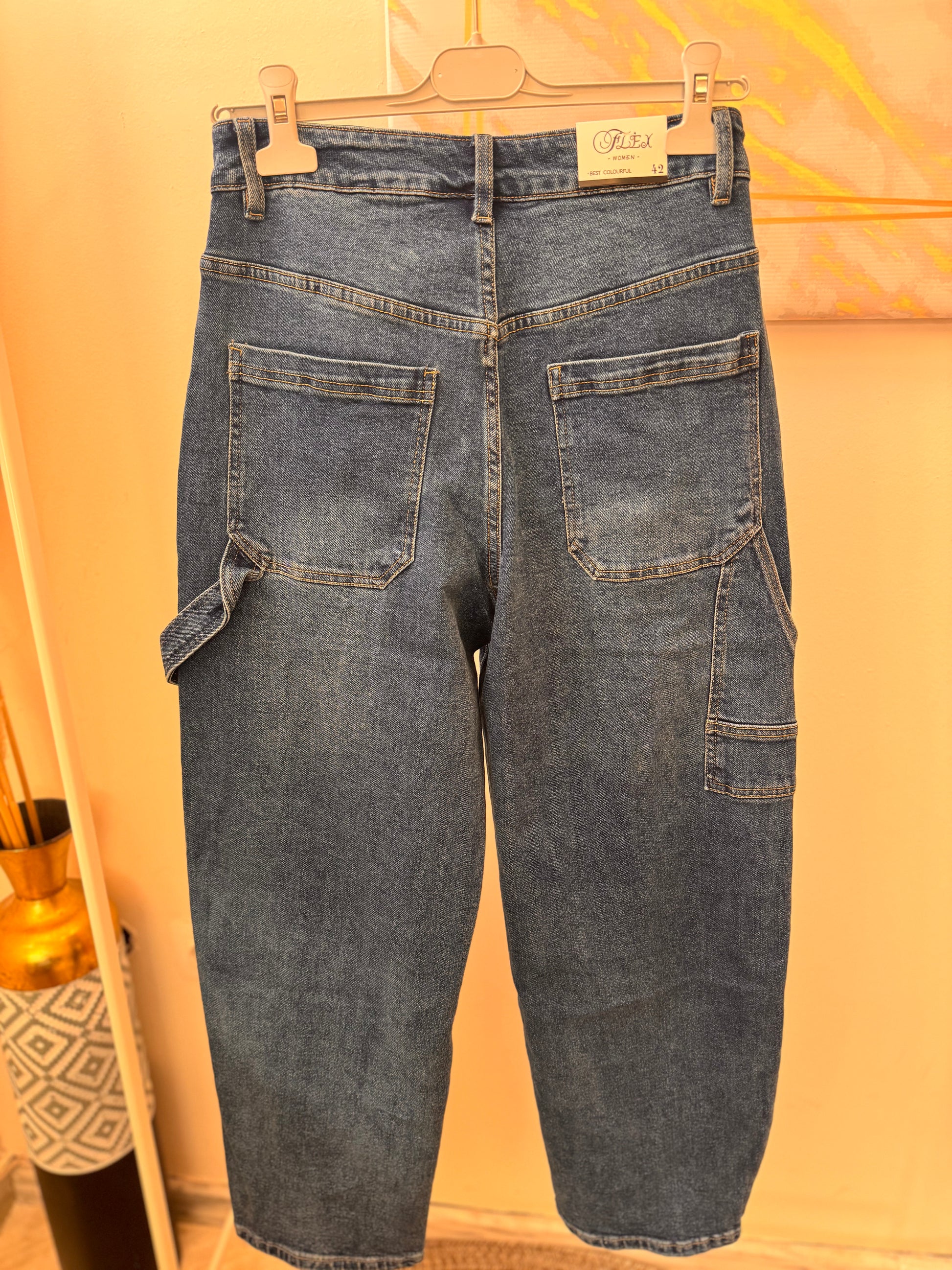 Λεπτομέρειες: banana fit , κολλητό στη μέση και έπειτα φαρδύ στα πόδια με την εξωτερική ταφή να ανοίγει προς τα έξω και να στενεύει ελαφρώς Στον αστράγαλο