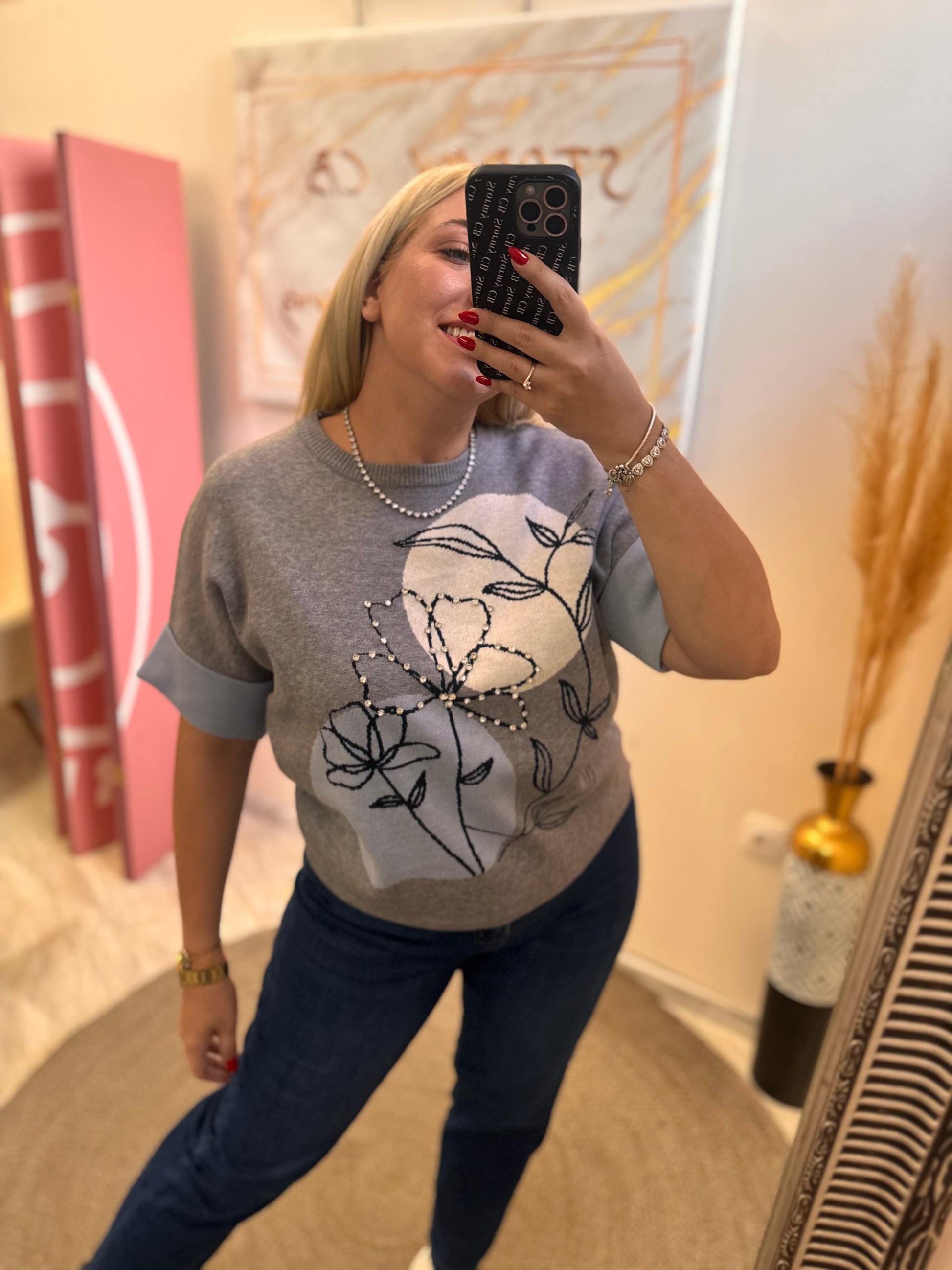 -Διαθέτει στρας και σχεδιο με λουλουδια