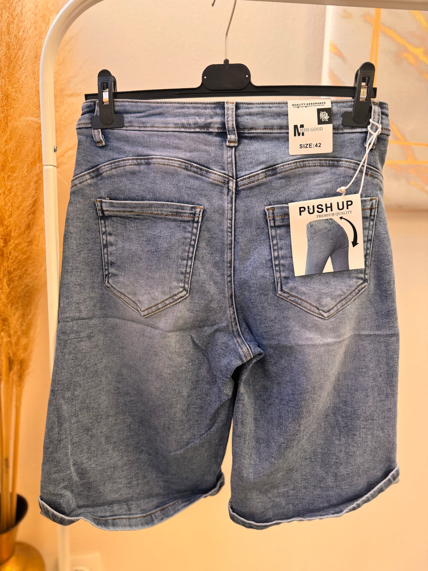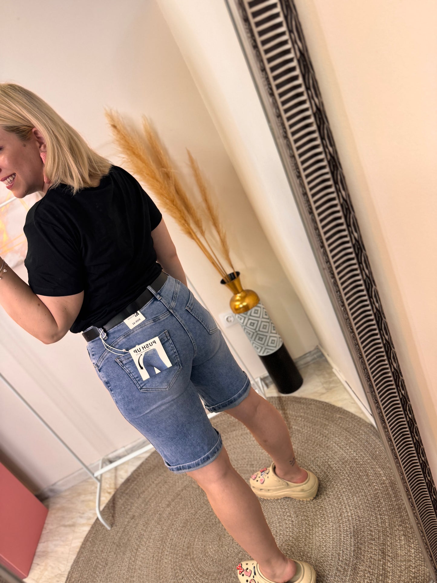 Λεπτομέρειες:Plus Size βερμούδα με ζώνη & push up εφέ