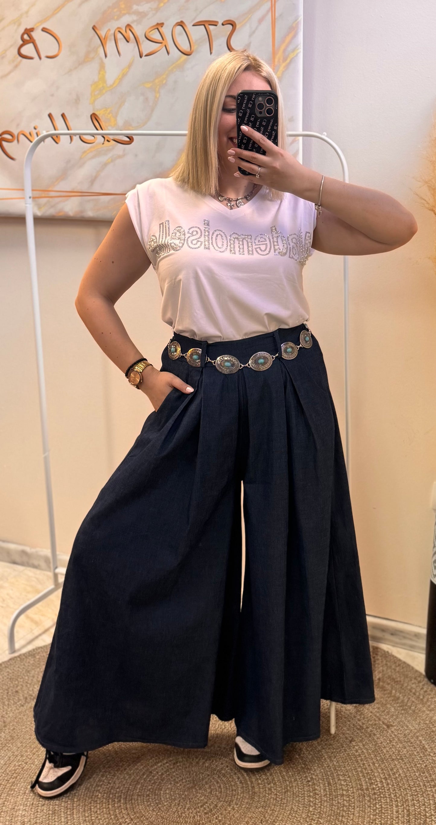 -Διαθέτει λάστιχο στο πίσω μεροσ τνα μέσης ,τσέπες , κουφόπιέτες και δίκη του ζώνη