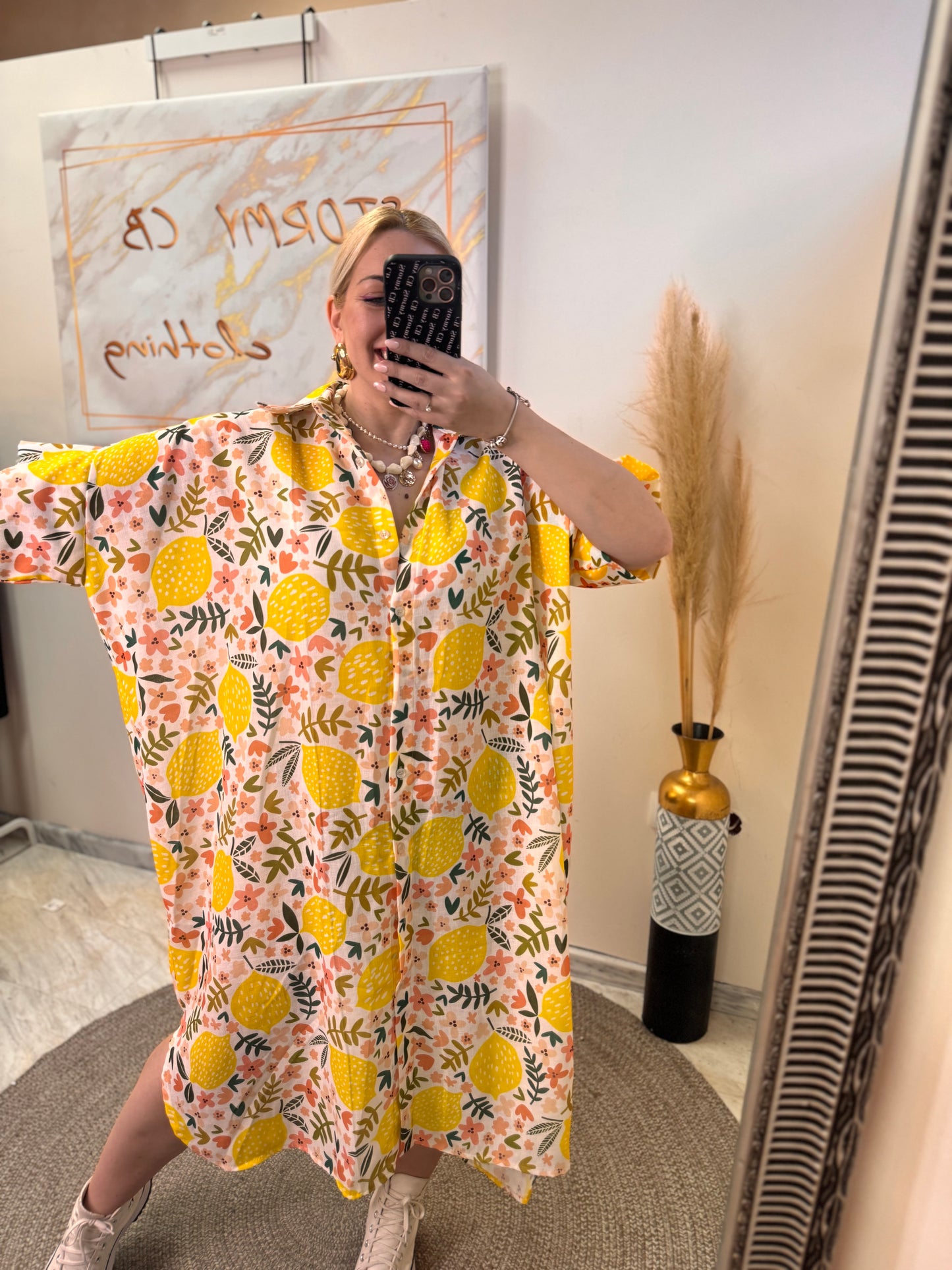 -Πουκαμισοφόρεμα σε πολύ φαρδιά γραμμή και σταθερό ύφασμα