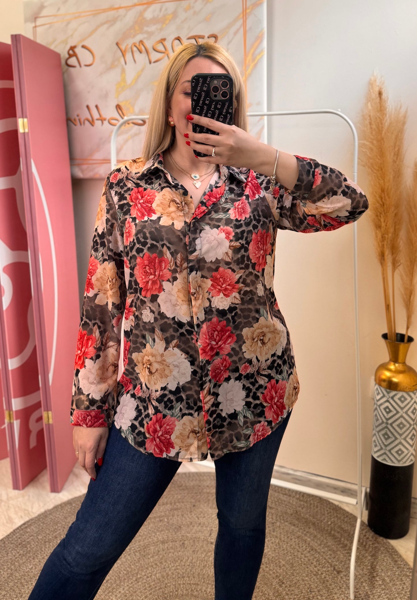 -Διαθέτει σχέδιο με βάση λεοπάρ και λουλούδια