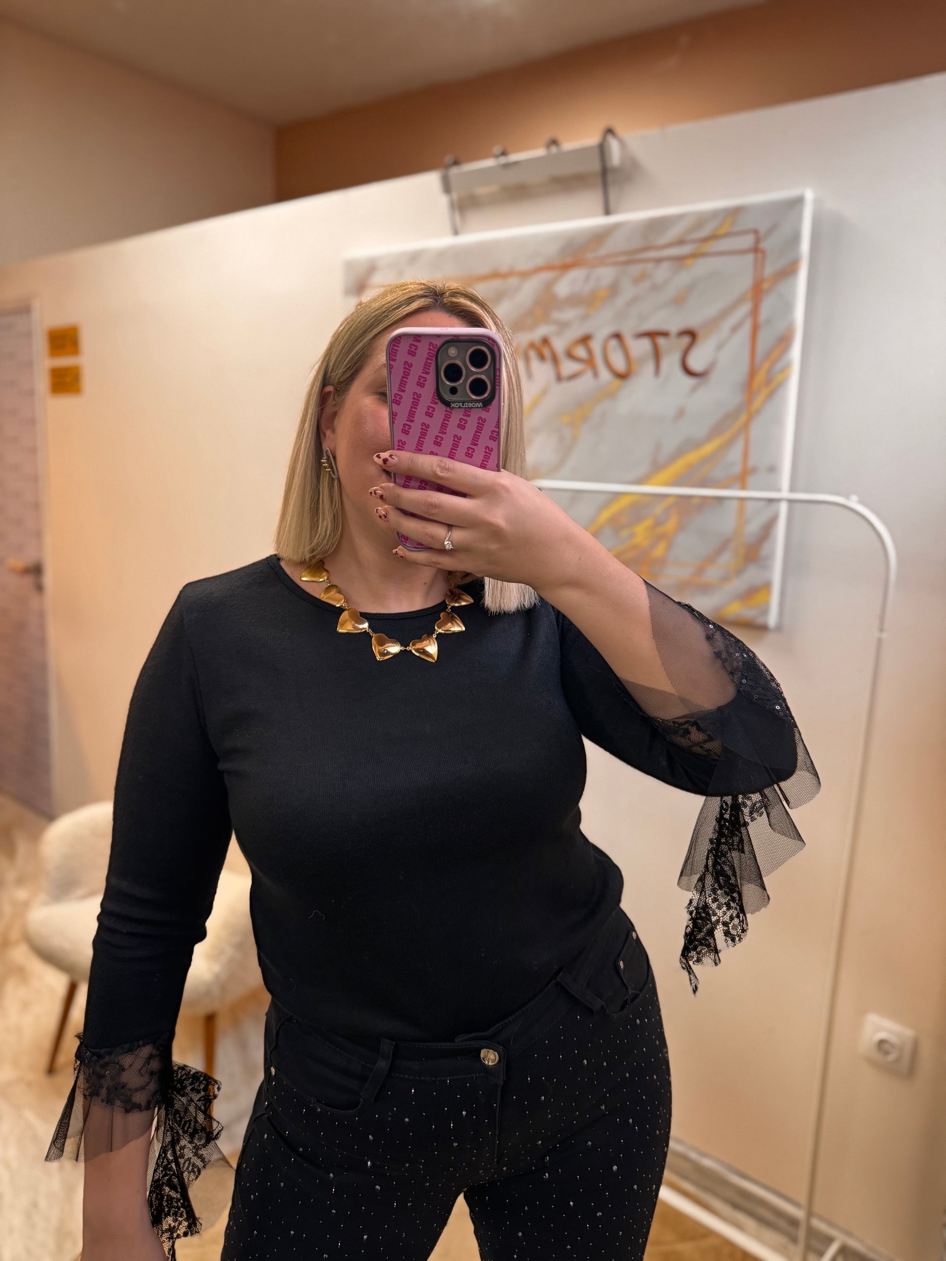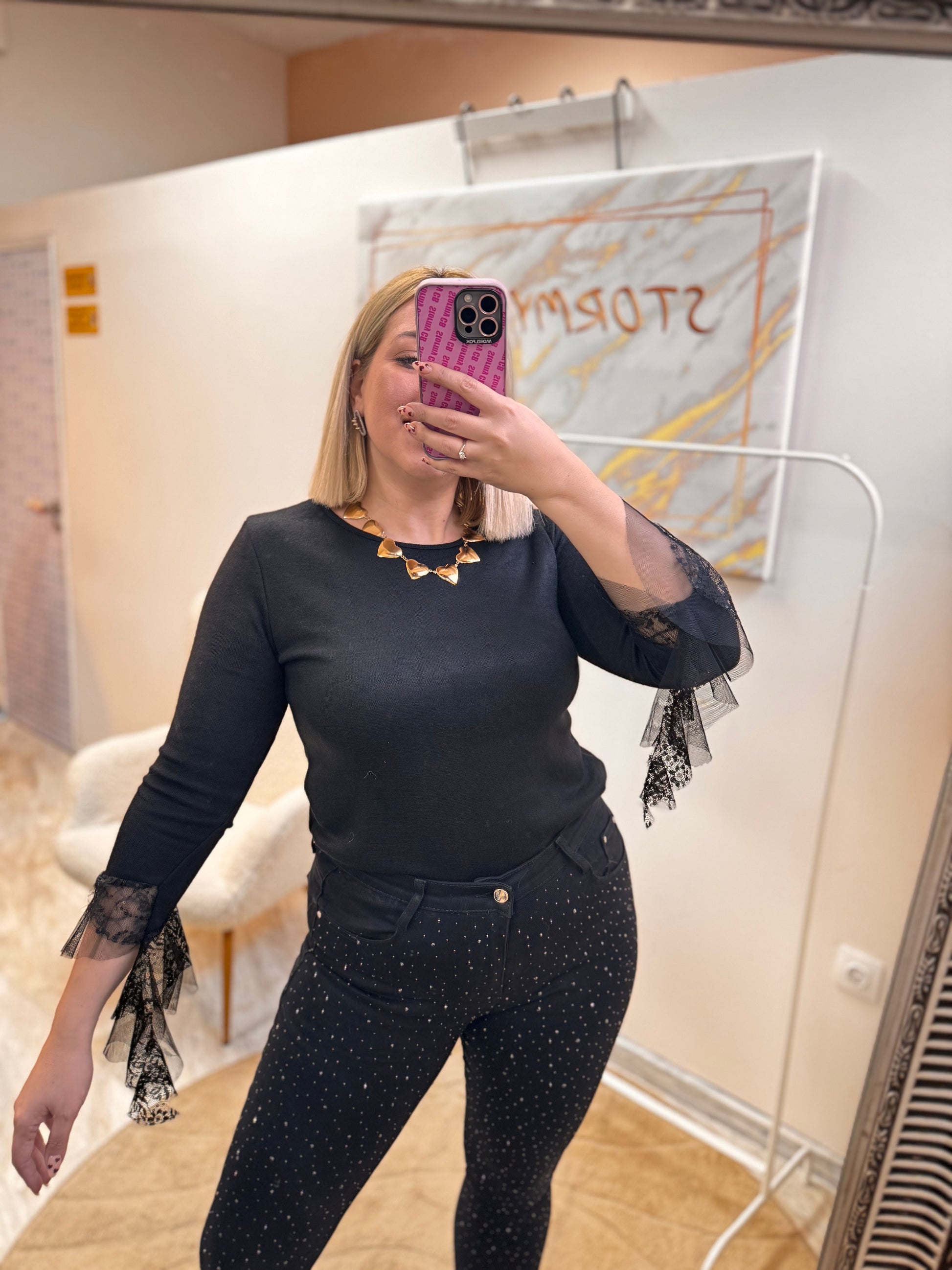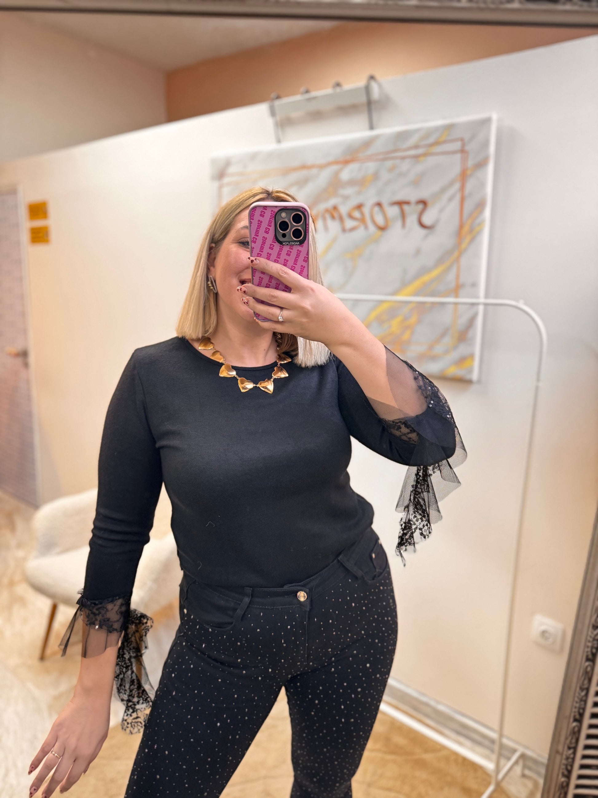 •Λεπτομερειες με παγιετα, τούλι και δαντέλα στο τελείωμα του μανικιού !