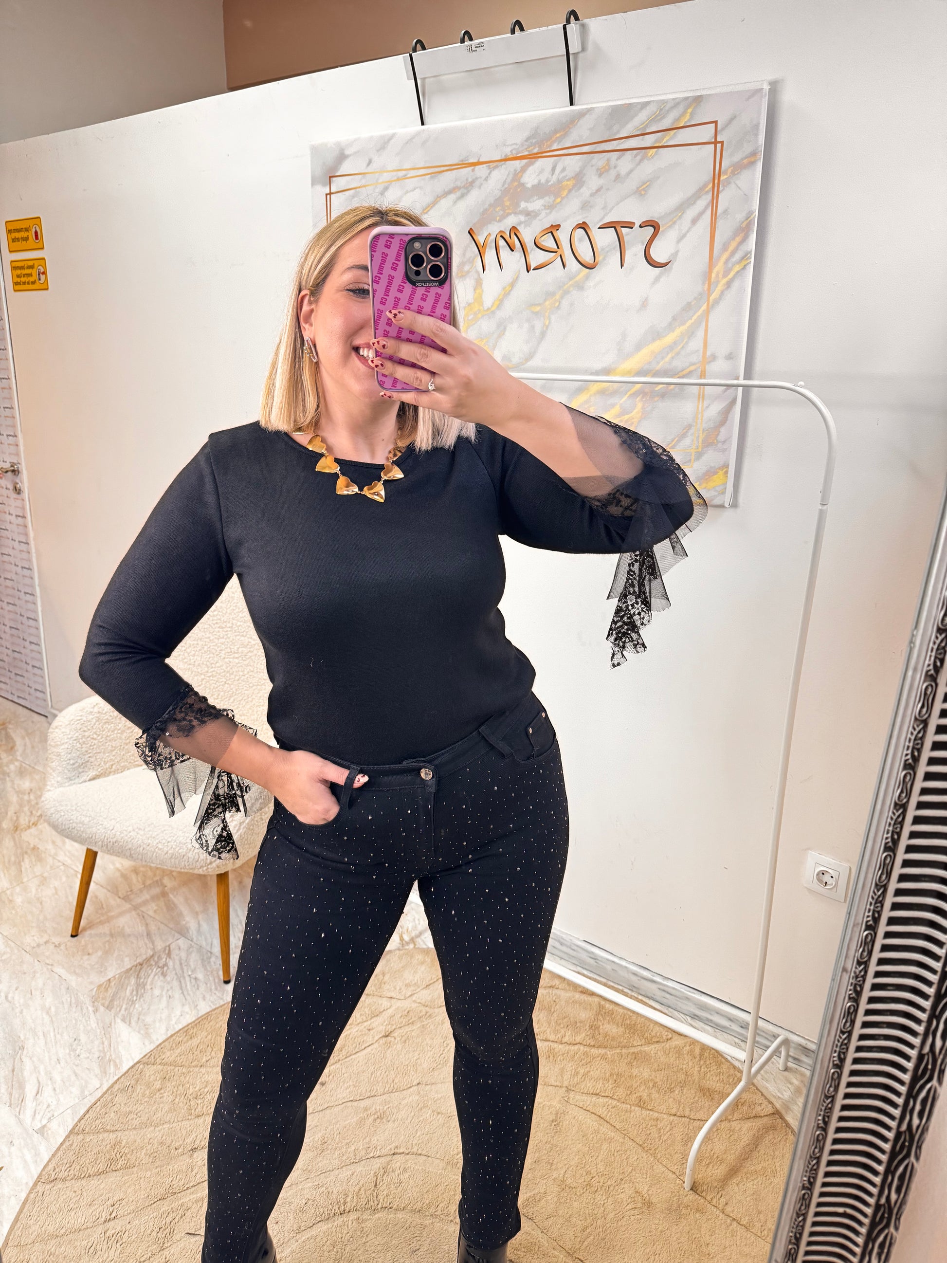 -Διαθέτει μαύρα στρας σε όλο το εμπρός σημείο
