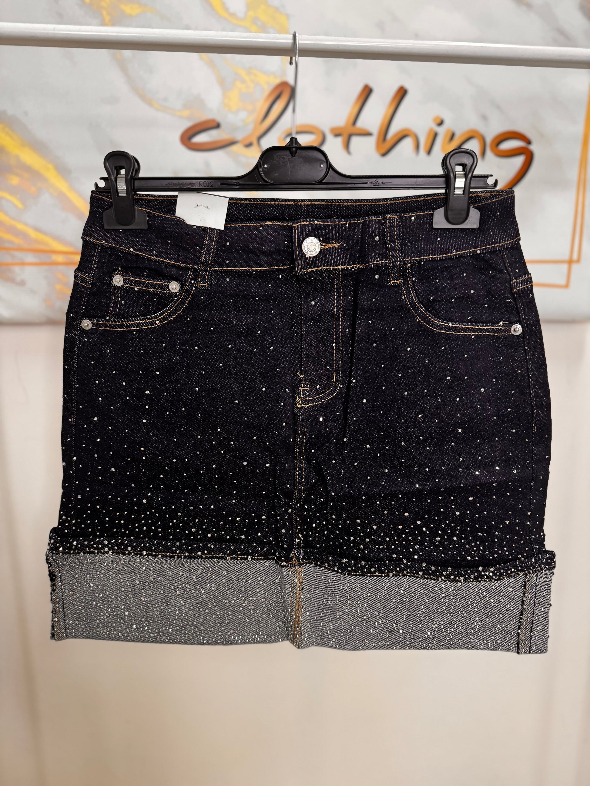 Λεπτομέρειες: Mini ελαστική τζιν στρας φούστα !