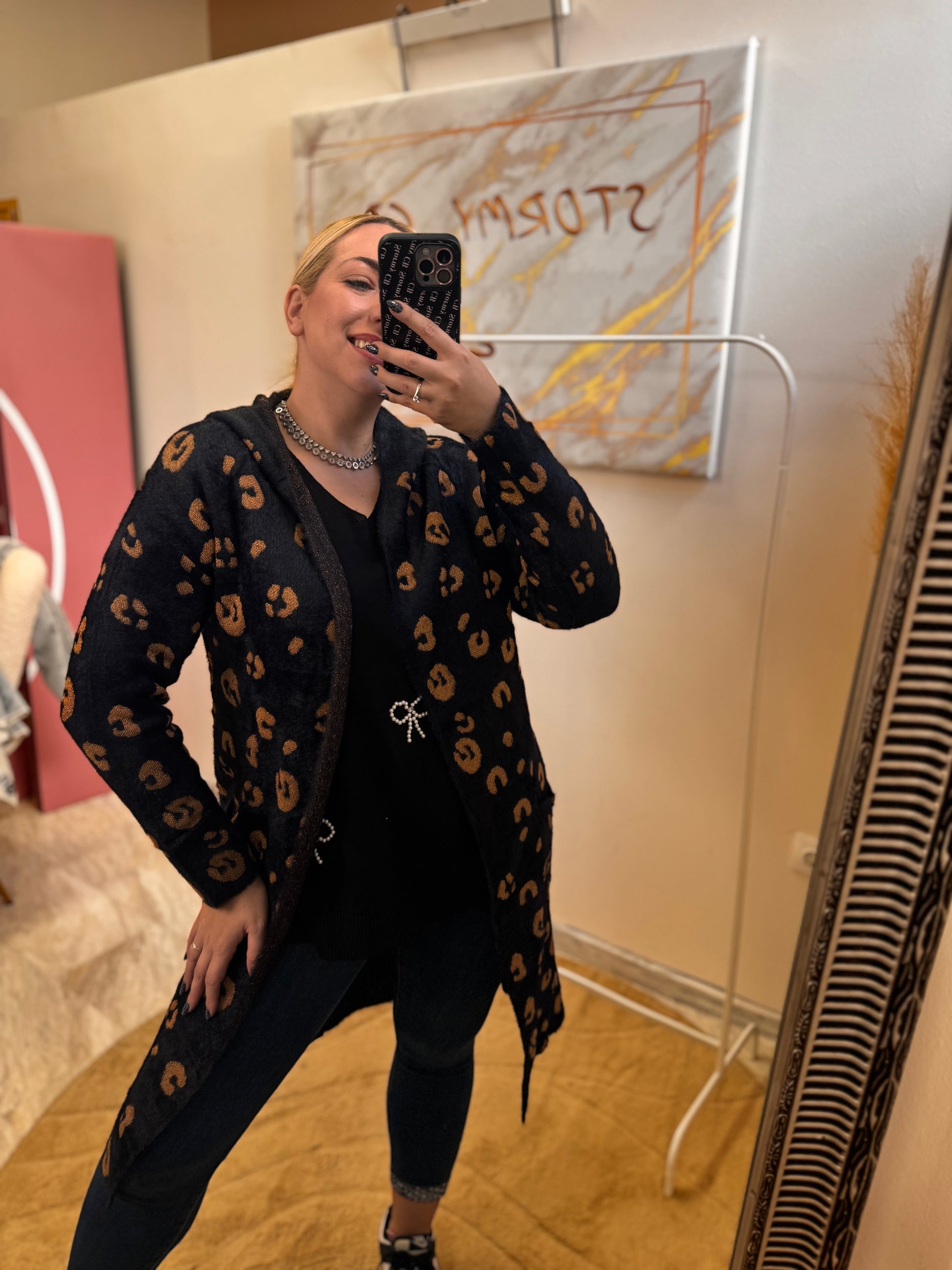 -Κανονικη γραμμή ,χοντρή ζακέτα με μεταλλική κλωστή στις λεοπάρ λεπτομέρειες