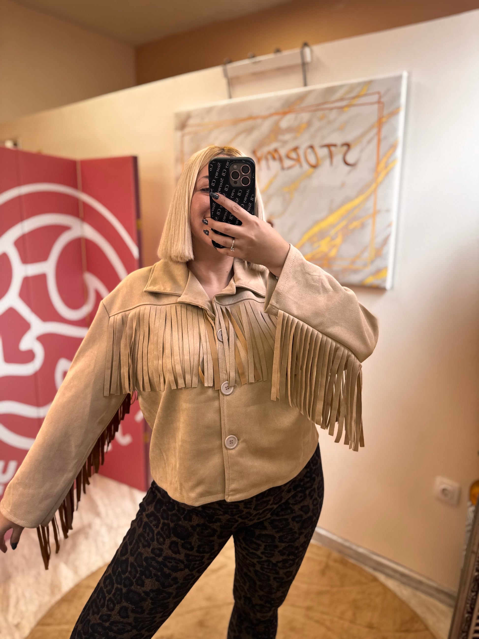 -Άνετη γραμμη , λεπτομέρειες με κροσια εμπρος, πισω και στα μανίκια.