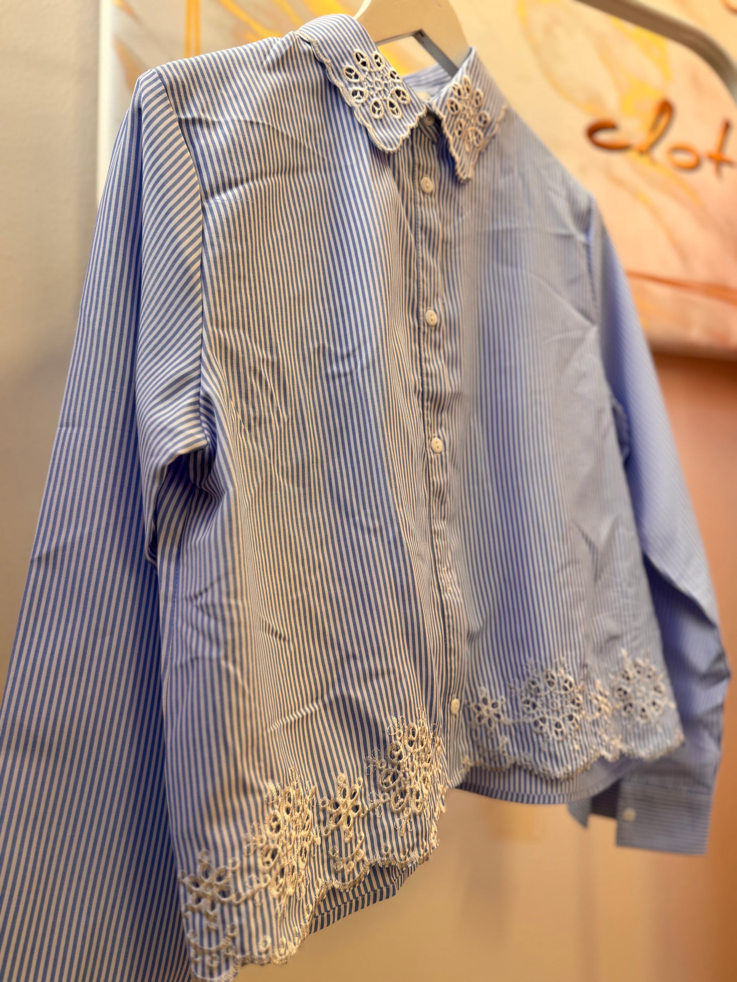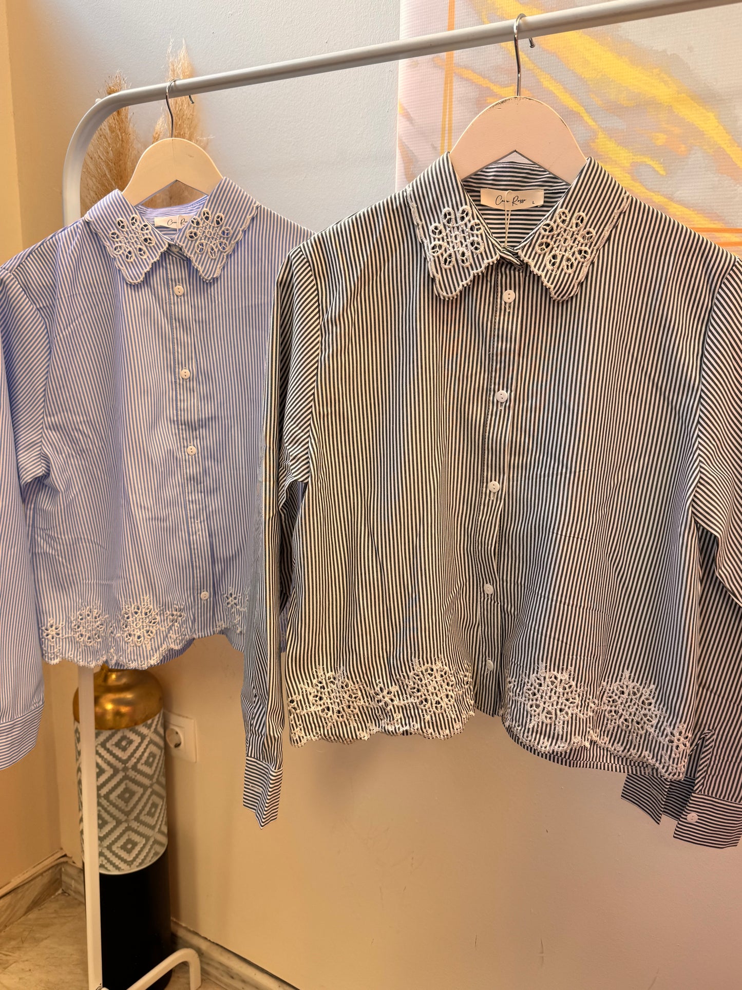 •Διαθέτει δαντέλα και κουλεδάκι στο γιακά και στο τελείωμα