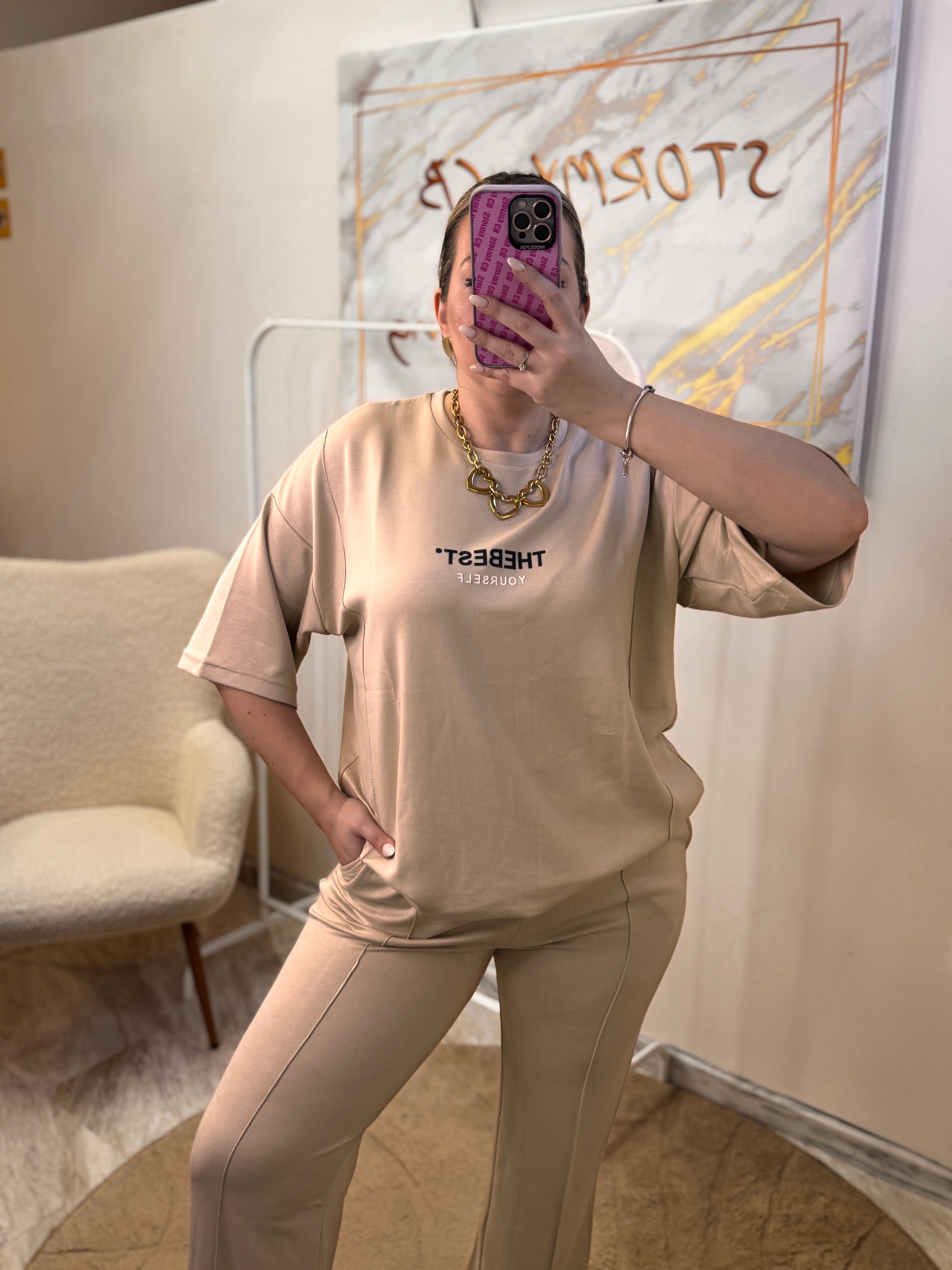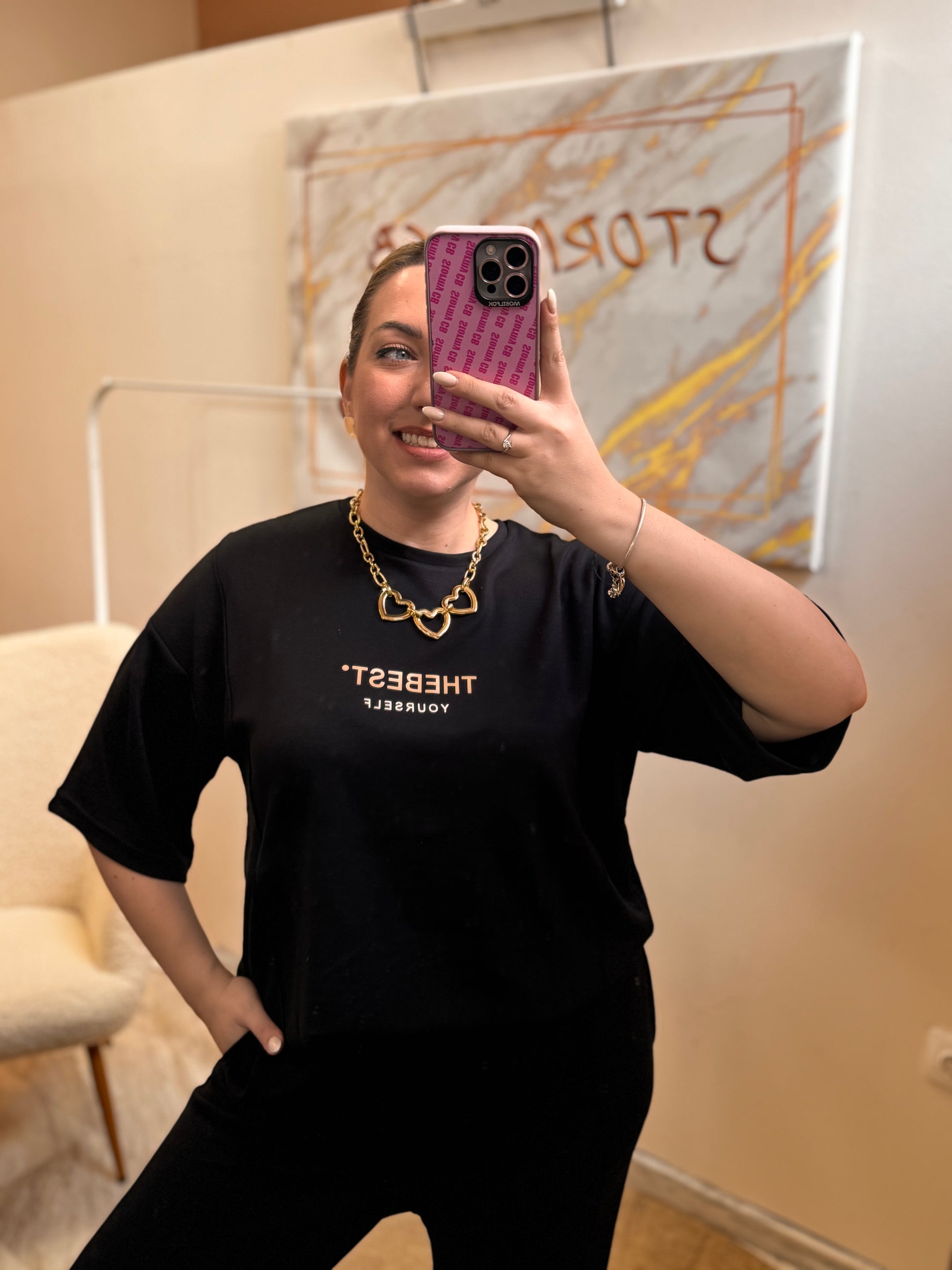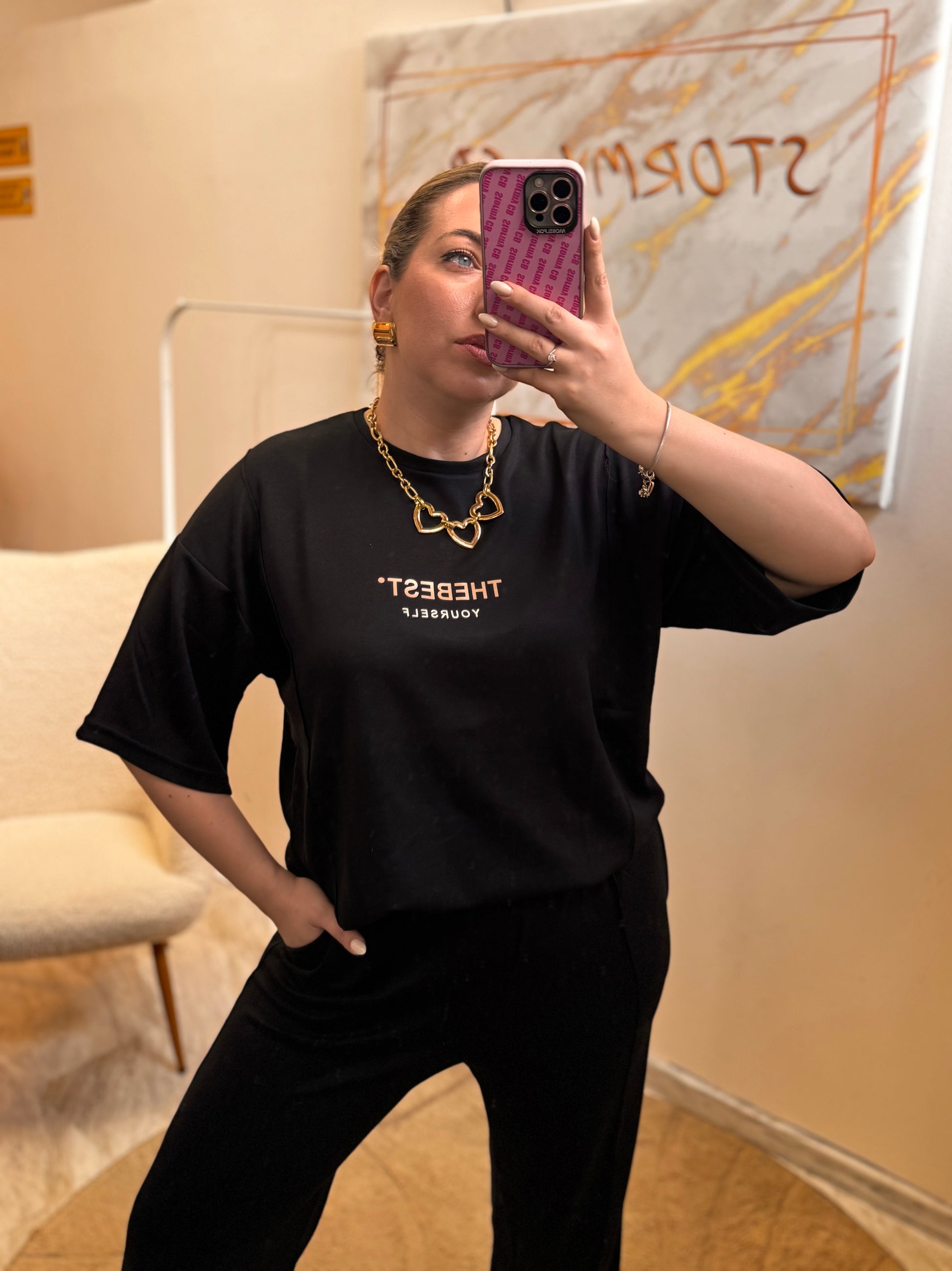-Ανετη μπλούσια oversized με άνετο μανίκι και τύπωμα