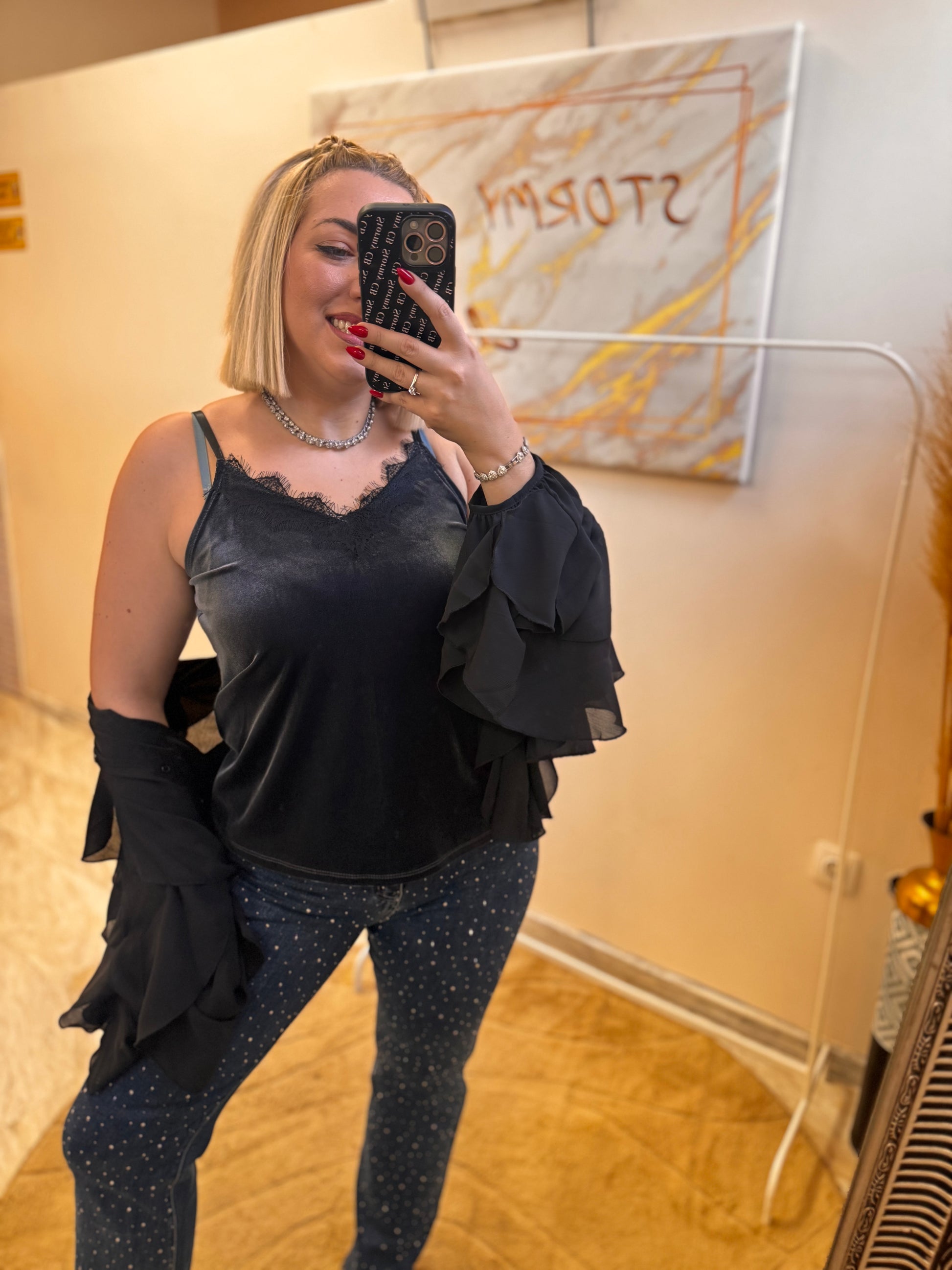 -Διαθέτει δαντέλα στο μπύστο.